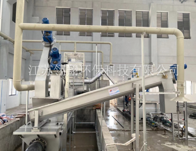 2.糞便固液分離設(shè)備接收處理的能力為1.7m3/mim,沖擊接受能力3m4/mim。設(shè)備將糞便雜物破碎、并將其中粒徑為8mm以上的固體與粒徑大于0.5毫米以上的砂粒95%去除,經(jīng)處理后的濾液進(jìn)入絮凝脫水裝置,分離出的固渣含水率在55%一70%之間。(見表1)